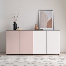 화이트 컬러로 깔끔하고 모던한 디자인을 갖추었으며, 선택 가능한 다양한 가로 길이로 거실 공간에 맞춰 효율적인 수납과 TV 배치가 가능한 거실장.