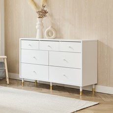넓은 7단 서랍으로 다양한 물품을 깔끔하게 정리할 수 있으며, 퓨어화이트 마감으로 밝고 세련된 분위기를 연출하는 와이드 서랍장.