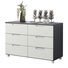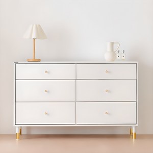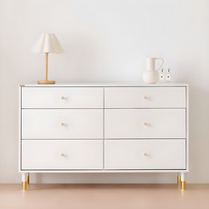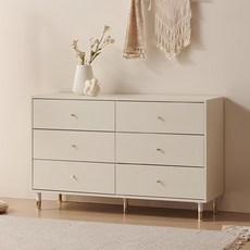 넉넉한 수납 공간과 깔끔한 디자인으로 다양한 공간에 어울리는 6단 와이드 서랍장, 서랍마다 부드럽게 여닫히며 실용성이 뛰어남.