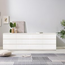 심플한 디자인과 넓은 서랍으로 안방 공간을 효율적으로 활용할 수 있는 4단 와이드 서랍장, 깔끔한 화이트 마감으로 다양한 인테리어와 어울림.