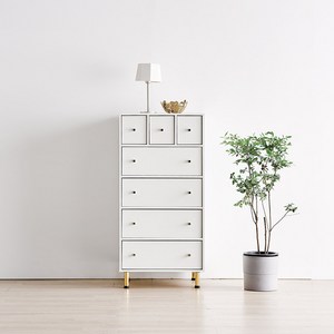 넉넉한 5단 7칸 구조로 다양한 물품을 효율적으로 수납할 수 있으며, 화이트 컬러로 깔끔하고 모던한 분위기를 연출하는 다용도 깊은 서랍장.