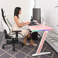 이 책상은 LED 조명과 RGB 핑크 색상으로 꾸며져 있어 세련된 분위기를 제공합니다. 다양한 크기 옵션으로 1인용 및 2인용으로 적합하며, 게이밍은 물론 사무용과 학생용 책상으로도 활용 가능합니다.