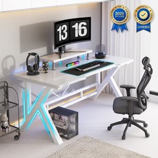 DARAMU K자형 고급 인체공학 컴퓨터 게이밍 책상 멀티 데스크 테이블, 프리미엄 화이트 업그레이드형