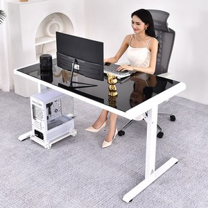 아우스 AUS 강화유리 컴퓨터책상 게이밍책상 컴퓨터테이블 학생책상 서재책상 사무용책상 1인용 2인용, 화이트+블랙