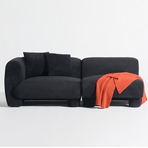 도모 에르본 3인용 우형 소파는 블랙 코듀로이 소재로 고급스러운 질감과 편안한 착석감을 제공하며, 쿠션 2개와 고이스 세트가 포함되어 다양하게 활용 가능하고, 방문 설치로 바로 배치할 수 있는 실용적인 소파입니다.
