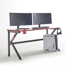 견고한 철제 구조와 카본 패턴 디자인으로 내구성이 높고, 게임과 사무용 모두에 적합하며 헤드셋 거치대가 포함되어 편리하게 사용할 수 있는 1인용 컴퓨터 책상입니다.