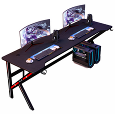 넓은 상판과 견고한 구조로 게임과 업무 환경 모두에 적합하며, 블랙 색상과 심플한 디자인으로 다양한 공간에 어울리는 게이밍 컴퓨터 책상입니다.