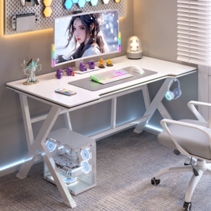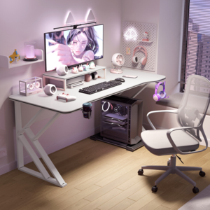 견고한 구조와 넓은 상판으로 게임과 업무에 적합하며, 화이트 색상과 심플한 디자인으로 다양한 공간에 어울리는 게이밍 컴퓨터 책상입니다.