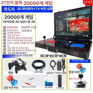 최신형 월광보합 판도라박스로 8000가지 한글 게임을 내장하고 2인 플레이가 가능하며, 2D와 3D 게임을 모두 지원하는 일체형 구조로 집에서도 레트로 오락실 게임을 즐길 수 있는 제품입니다.