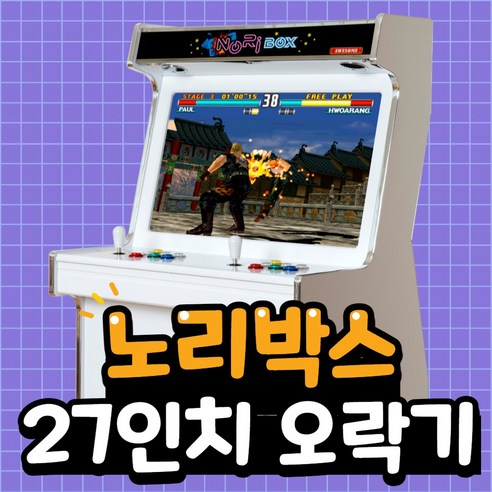 27인치 대화면을 갖춘 노리박스 오락기로, 고전 게임과 아케이드 게임을 즐길 수 있으며, 가정에서도 오락실 느낌을 그대로 경험할 수 있는 휴대형 겸용 제품입니다.