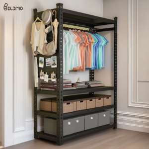BILIMO 철제 드레스룸 수납 행거 탄공판 업그레이드형 옷장, 4단1봉, 블랙
