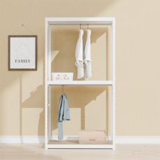 심플한 화이트 색상으로 어느 공간에나 어울리며, 3단 2열 구조로 옷과 소품을 효율적으로 정리할 수 있는 튼튼한 철제 행거입니다.