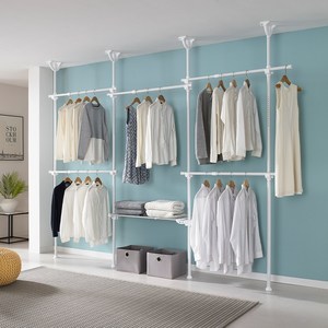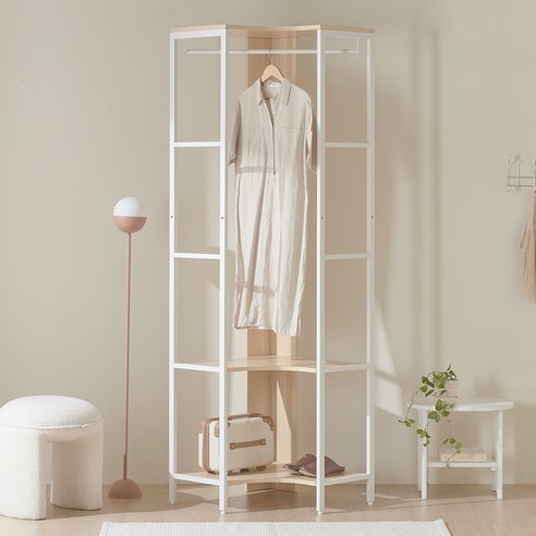 코너 공간을 효율적으로 활용할 수 있는 튼튼한 철제 시스템 행거로, 다양한 옷과 액세서리를 깔끔하게 정리할 수 있으며 방문 설치로 바로 사용할 수 있습니다.