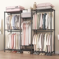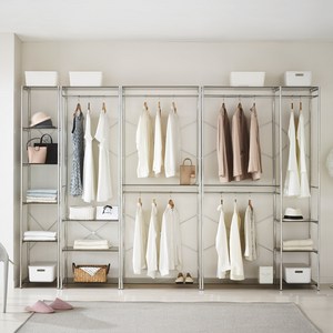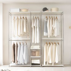 넉넉한 수납 공간과 견고한 구조로 다양한 의류와 액세서리를 효율적으로 정리할 수 있는 특대형 드레스룸 행거 시스템이며, 깔끔한 디자인으로 인테리어와 조화롭게 배치할 수 있습니다.