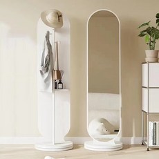 BYOU 다용도 회전식 옷걸이행거 전신거울 1단 수납 행거 스탠드 옷걸이 시스템 행거, 웜 화이트 36*166