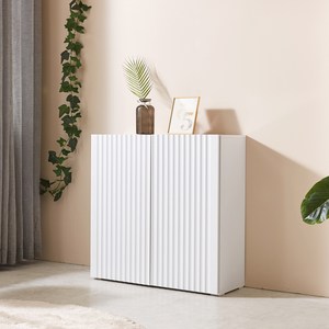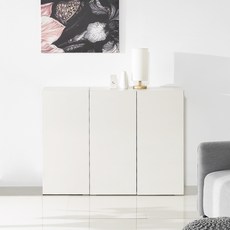 세련된 템바보드 디자인과 슬림한 사이즈로 공간 활용에 적합한 화이트 수납장이다.