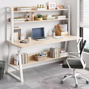 다용도 책상 책꽂이 철재 1인용책상 사무용책상, 목색의