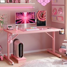 Bestier LED 컴퓨터 게이밍 책상 컴퓨터 책상 1인용 책상, 카본 패턴 핑크