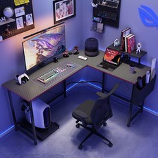 월로덴 L자형 코너형 게이밍 컴퓨터 책상 유튜버책상, 탄소섬유블랙(150x120x48x75CM)