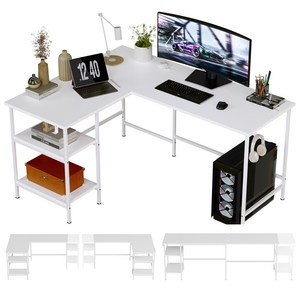 월로덴VORDERN L형 코너형 컴퓨터 책상 선반책상, 프리미엄 화이트