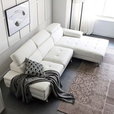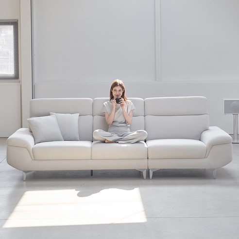 부드러운 가죽 소재로 고급스러운 촉감을 제공하며, 3인용과 카우치 구성으로 4인이 편안하게 사용할 수 있고, 화이트 색상으로 세련된 거실 공간을 연출할 수 있는 소파입니다.