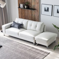 부드러운 가죽 소재로 고급스러운 촉감을 제공하며, 3인용 크기와 스툴 포함 구성으로 편안하고 다양한 방식으로 휴식이 가능한 화이트 소파입니다.