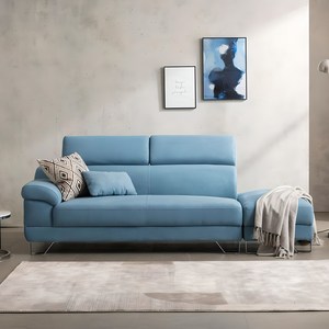 아쿠아텍스 패브릭 소재로 생활 방수가 가능하며, 3인용 크기로 넉넉한 좌석을 제공하고, 스카이블루 색상으로 밝고 산뜻한 공간 연출이 가능한 소파입니다.