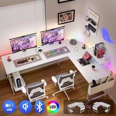 월로덴 컴퓨터 책상 L자형 코너형 게이밍 책상 좌우 가변형 선반 포함, 탄소섬유화이트 PRO