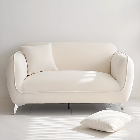 부드러운 가죽 소재와 세련된 아이보리 색상으로 제작된 2인용 소파로, 편안한 착석감과 깔끔한 디자인으로 거실 공간을 고급스럽게 완성할 수 있는 제품이다.