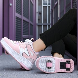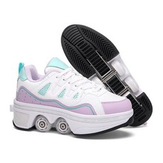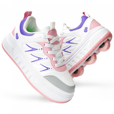 JINPEI 바퀴달린 운동화는 탈착식 더블 휠로 변형이 가능하며, 남녀 모두 사용 가능하고 간편하게 롤러 슈즈로 변신할 수 있는 핑크색 운동화입니다.