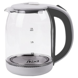 신일 LED 램프 전기 주전자로, 1.8L 대용량을 지원하며, 투명 유리 재질로 물 상태를 쉽게 확인할 수 있고, LED 표시등으로 전원 상태를 직관적으로 확인할 수 있는 주방용 전기 주전자입니다.