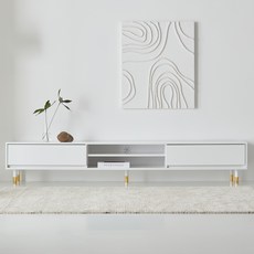 쏘즈 밀란 3D템바 라운드 TV 거실장은 2000mm 폭으로 대형 TV 설치가 가능하며, 화이트 컬러와 라운드 디자인으로 부드럽고 세련된 거실 분위기를 연출하고, 넉넉한 수납 공간으로 다양한 소품과 기기를 정리할 수 있습니다.