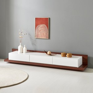 프리다 익스텐션 3단 서랍 거실장은 2300mm의 넓은 폭으로 대형 TV를 안정적으로 거치할 수 있으며, LED 조명과 모던한 월넛화이트 디자인으로 세련된 거실 분위기를 연출하고, 낮은 높이와 확장형 구조로 다양한 수납과 장식 활용이 가능합니다.