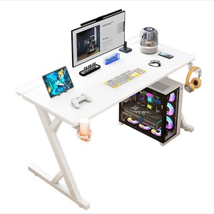 Z자형 구조로 공간 활용이 뛰어나고, 화이트 컬러로 깔끔한 디자인을 갖춘 게이밍 컴퓨터 책상으로, 안정적인 프레임과 편리한 사용성을 제공하는 제품입니다.