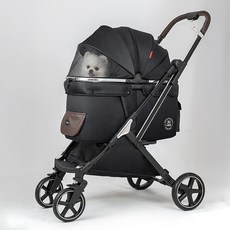 풀오토 퀵폴딩 기능으로 손쉽게 접고 펼 수 있으며 사계절 내내 쾌적하게 사용할 수 있는 블랙 컬러의 프리미엄 강아지 유모차예요.