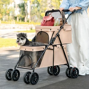 Westlion 접이식 2인용 강아지 유모차 휴대용 실용적인 반려동물 유모차, 1개, 베이지