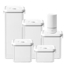 다양한 용량의 진공 밀폐용기 5종과 전동펌프가 포함되어 식품을 신선하게 보관하고, 공기 차단으로 장기간 저장이 가능한 세트입니다.