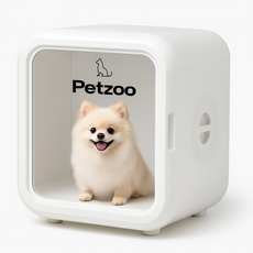 저소음 설계로 반려동물 스트레스 없이 털을 건조할 수 있는 드라이룸으로, 실내 사용에 적합하며 안전하게 온도 조절이 가능함.