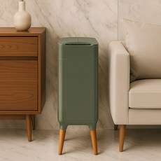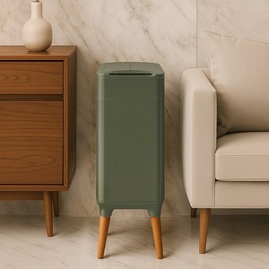 스마트 자동센서 모던 휴지통 20L 올리브 그린 우드 감성 디자인 쓰레기통 집들이 신혼부부 선물