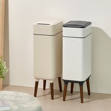 스마트 자동센서 모던 휴지통 20L 아이보리 화이트 우드 감성 디자인 쓰레기통 집들이 신혼부부 선물