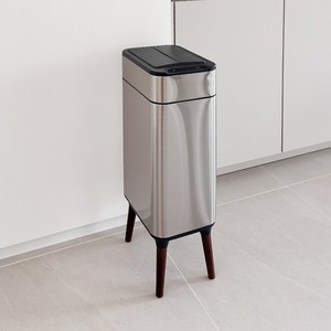 자동센서로 손대지 않고 열리는 위생적인 휴지통이며, 우드 감성의 디자인으로 인테리어에 자연스럽게 어울리는 20L 용량의 실용적인 제품.