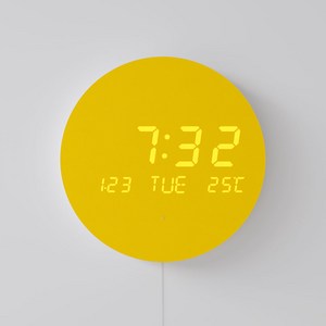베오라 타임스팟 LED 무소음 벽시계 컬러 디자인 인테리어시계 온도 날짜표시, 옐로우