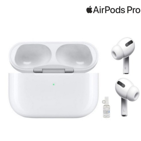 에어팟프로 유닛과 맥세이프 충전 케이스를 개별로 구매할 수 있는 구성으로 분실 시 교체용으로 적합하며, 손소독제 사은품이 함께 제공된다.