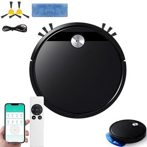물걸레와 흡입을 겸비한 자동청소기 세트로, 블랙 디자인에 스마트 기능을 갖추고 있어 집안 바닥을 손쉽게 청결하게 관리할 수 있는 제품입니다.