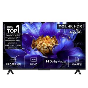 [10% 환급가전] TCL 4K HDR Google TV, 109cm(43인치), 43V6C, 스탠드형, 고객직접설치