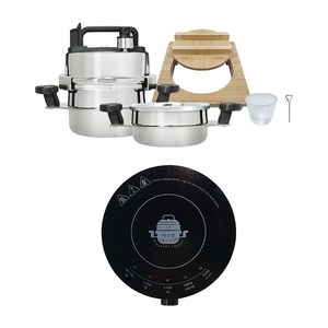 소댕 미니 압력솥 통3중 인덕션 스텐 압력밥솥 누룽지 가마솥 1L / 2.2L, 2.2L압력솥 대나무받침대 세트, 1개