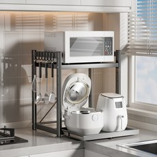 인더몰 슬라이딩 밥솟 거치대 높이조절 전자레인지 선반, 2단, 블랙