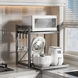 슬라이딩 구조로 전자레인지 사용이 편리하며, 2단으로 밥솥과 전자레인지를 효율적으로 수납할 수 있고, 높이 조절 기능으로 주방 공간을 최적화할 수 있는 선반입니다.