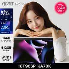 LG전자 그램 프로360 16T90SP-KA70K + WIN11설치모델로 출고됩니다.16T90SP-KA70K · WIN11 Home · 16GB · 512GB · 화이트