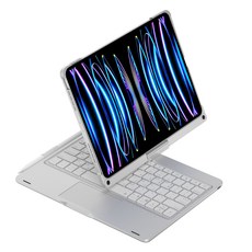 360도 회전 트랙패드와 7색 백라이트를 갖춘 시즌템 플러스 키보드 케이스로, 저소음 타이핑과 애플펜슬 거치 기능을 제공하며 실버 색상으로 스타일리시하게 사용할 수 있습니다.